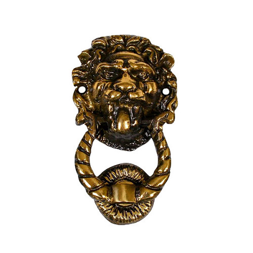 Дверний молоток ЛЕВ малий - це елемент дверної фурнітури, який служить для постукування по дверям з метою сповіщення господарям про необхідність їх відчинити. В наш час служить більше як декоративний елемент та підійде до дверних полотен та будинків в класичному стилі. Має оригінальний вигляд. В кольорі “бронза” відмінно буде виглядати на дверях темних відтінків.