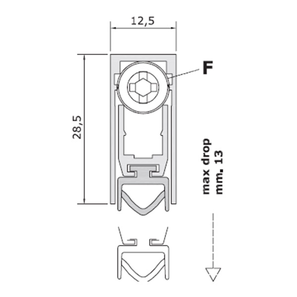Висувний поріг COMAGLIO 420 із серії BASIC - це ущільнювач дверей, що встановлюється врізним монтажем в пластикові, дерев'яні, алюмінієві та металеві броньовані дверні полотна. Має один вид регулювання (гвинт F - опускання). Він керує рухомим профілем з прокладкою (опускання з боку петель і подальше поступове опускання по всій довжині), тим самим забезпечуючи максимально сильний і рівномірний притиск по всій його довжині. При цьому важливо пам’ятати, що простір між дверима і підлогою повинен бути не більший, аніж максимальна висота, на яку опускається поріг.