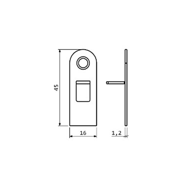 Торцева заглушка P1645 з отвором під кнопку – це металевий елемент для декорування торців порогів SIPAM у дверях.