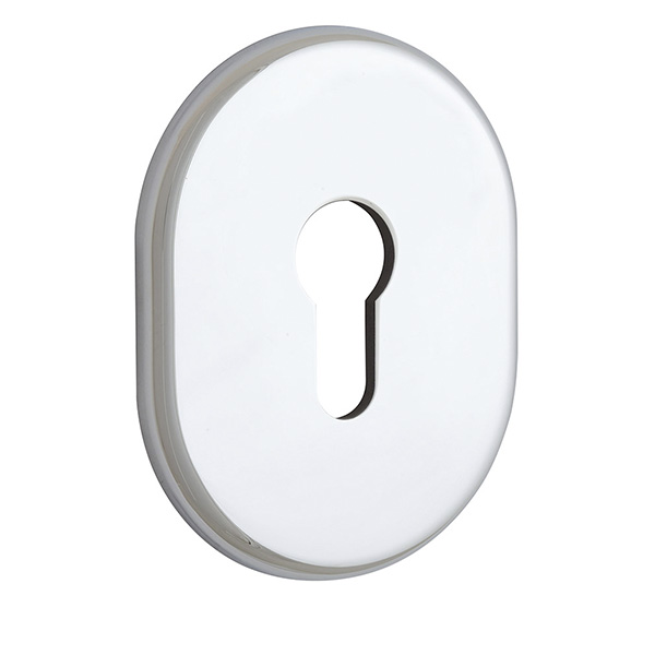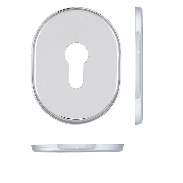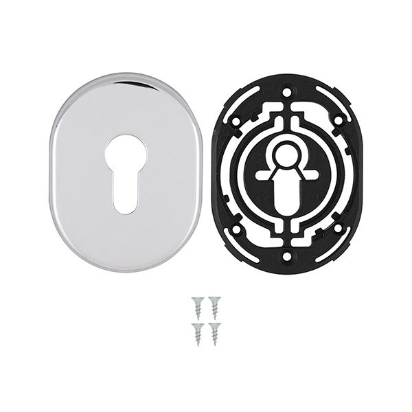 Декоративна накладка DISEC KT036 - це декоративний елемент, що призначений для надання дверним полотнам більш охайного вигляду. Використовується в парі із врізними броненакладками із замками і серцевинами стандарту EURO DIN. Кріпиться з внутрішньої сторони дверей за допомогою пластика та саморізів. Накладка дає можливість приховати монтажні отвори, подряпини та інші пошкодження, які можуть з’явитись при установці замка і серцевини. Виготовлена із латуні, має овальну форму розміром 85х65 мм. В кольорі “хром полірований” найкраще буде доповнювати відповідного кольору протектор та двері світлих відтінків - від тепло-сірих до бежевих. Монтаж відбувається доволі просто.