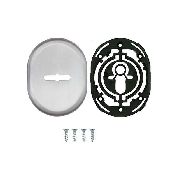 Декоративна накладка DISEC KT3838 – це декоративний елемент, що призначений для надання дверним полотнам більш охайного вигляду. Використовується із замками з сувальдним механізмом закривання. Кріпиться на двері за допомогою пластика та саморізів як з внутрішньої, так і зовнішньої сторони. Накладка дає можливість приховати монтажні отвори, подряпини та інші пошкодження, які можуть з’явитись при установці замка. Виготовлена із нержавіючої сталі, має овальну форму розміром 85х65 мм. В кольорі “нержавіюча сталь матова” найкраще буде доповнювати відповідного відтінку дверне полотно.