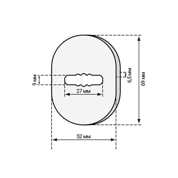 • Овальна форма розміром – 69х52х6,5 мм.