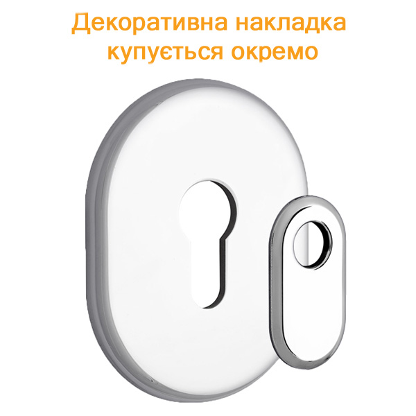 Має овальну форму розміром 37х20 мм. В кольорі "хром полірований" найкраще буде доповнювати дверне полотно аналогічного відтінку.