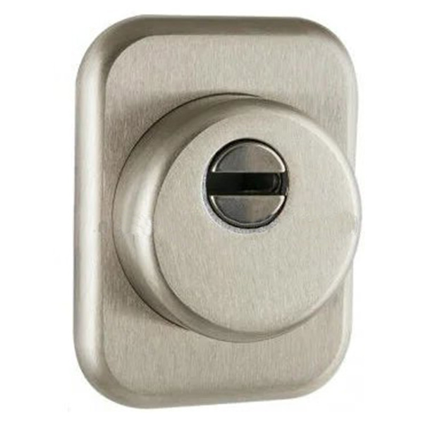 Для монтажу по діаметру протектора робиться отвір в дверному полотні. Кріпиться довкола серцевини стяжними гвинтами, створюючи монолітну конструкцію з нею. Таким чином, протектор захищає її разом із точкою кріплення в дверях від фізичних та силових методів злому — свердління, виламування та вибивання. Доступу до гвинтів кріплення немає і зірвати саму броненакладку надзвичайно складно. Висота (або товщина) її складає 25 мм, діаметр - 50 мм. Комплектується прямокутним щитком. В кольорі “матовий хром” найкраще буде доповнювати двері світлих відтінків - від тепло-сірих до бежевих.