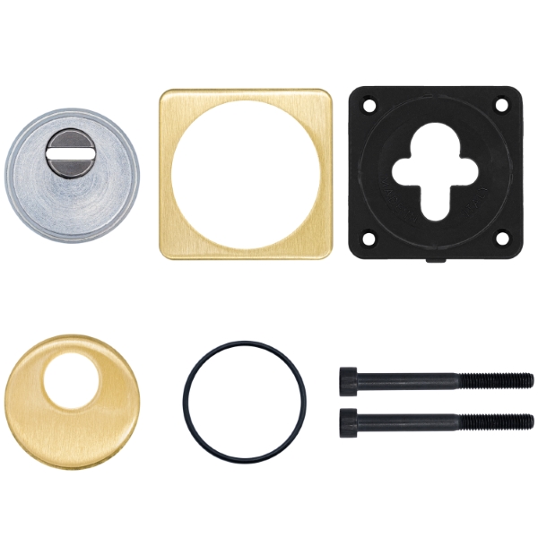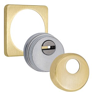 Для монтажу по діаметру протектора робиться отвір в дверному полотні. Кріпиться довкола серцевини стяжними гвинтами M6x40 мм, створюючи монолітну конструкцію з нею. Гвинти виготовлені зі спеціальної сталі, яка допомагає витримати силу навантаження > 2 300 кг на один гвинт. Таким чином, протектор захищає серцевину разом із точкою кріплення в дверях від фізичних та силових методів злому – свердління, виламування та вибивання. Доступу до гвинтів кріплення немає, тому зірвати саму броненакладку надзвичайно складно. Висота (або товщина) складає 25 мм, діаметр – 50 мм. В кольорі “латунь матова” найкраще буде доповнювати двері світлих відтінків.