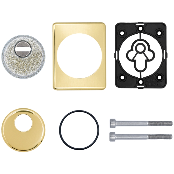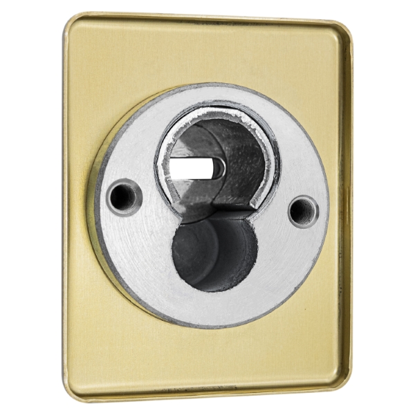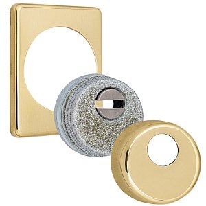 Для монтажу по діаметру протектора робиться отвір в дверному полотні. Кріпиться довкола серцевини стяжними гвинтами M6x40 мм, створюючи монолітну конструкцію з нею. Гвинти виготовлені зі спеціальної сталі, яка допомагає витримати силу навантаження > 2 300 кг на один гвинт. Таким чином, протектор захищає серцевину разом із точкою кріплення в дверях від фізичних та силових методів злому – свердління, виламування та вибивання. Доступу до гвинтів кріплення немає, тому зірвати саму броненакладку надзвичайно складно. Висота (або товщина) складає 25 мм, діаметр – 50 мм. В кольорі “латунь полірована” найкраще буде доповнювати двері світлих відтінків.