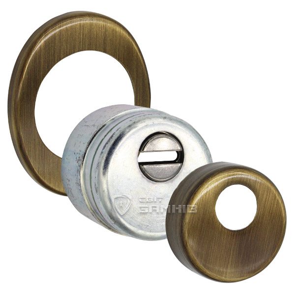 Для монтажу по його діаметру робиться отвір в дверному полотні. Кріпиться довкола серцевини стяжними гвинтами, створюючи монолітну конструкцію з нею. Серцевина входить в броненакладку до 35 мм. Таким чином, протектор захищає її разом із точкою кріплення в дверях від фізичних та силових методів злому — свердління, виламування та вибивання. Доступу до гвинтів кріплення немає і зірвати саму броненакладку надзвичайно складно. Висота (або товщина) її складає 25/33/42 мм, діаметр - 50 мм. Комплектується декоративною накладкою розміром 85х70 мм для надання дверному полотну більш охайного вигляду. В бронзовому кольорі найкраще буде доповнювати двері з пильно-землистої палітри.