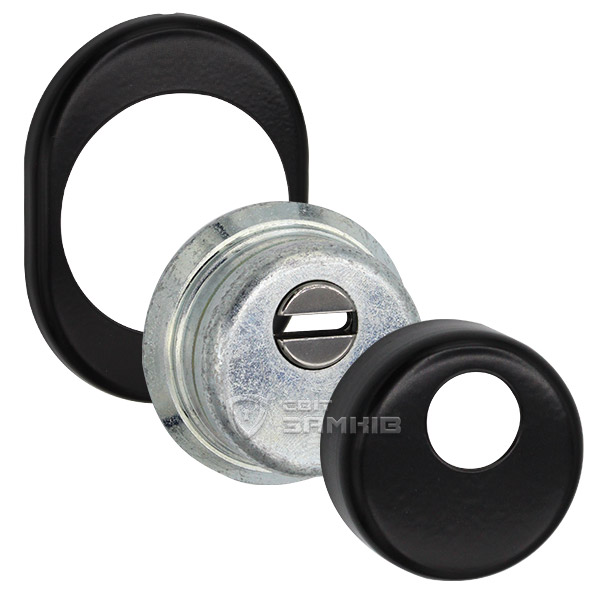 Для монтажу по діаметру протектора робиться отвір в дверному полотні. Кріпиться довкола серцевини стяжними гвинтами, створюючи монолітну конструкцію з нею. Таким чином, протектор захищає її разом із точкою кріплення в дверях від фізичних та силових методів злому — свердління, виламування та вибивання. Доступу до гвинтів кріплення немає і зірвати саму броненакладку надзвичайно складно. Висота (або товщина) її складає 25 мм, діаметр - 50 мм. В чорному кольорі найкраще буде доповнювати двері аналогічних відтінків для того, щоб максимально уникнути контрастів та не привертати зайвої уваги.