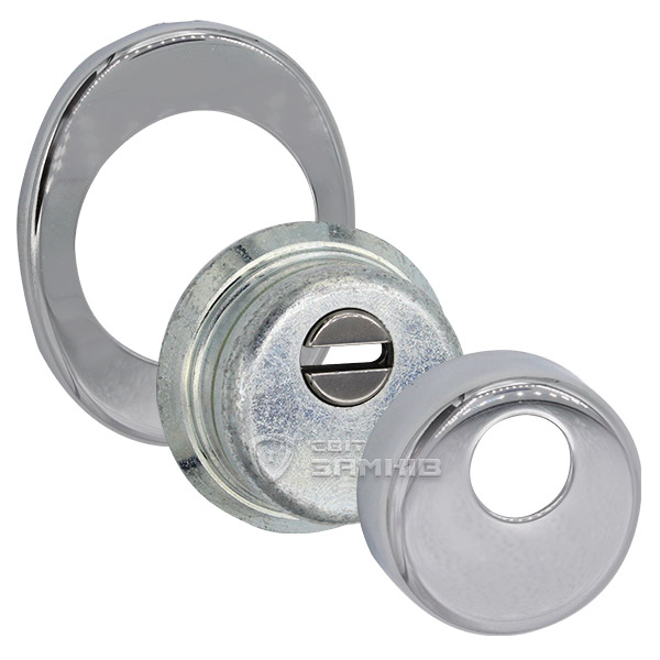 Для монтажу по діаметру протектора робиться отвір в дверному полотні. Кріпиться довкола серцевини стяжними гвинтами, створюючи монолітну конструкцію з нею. Таким чином, протектор захищає її разом із точкою кріплення в дверях від фізичних та силових методів злому — свердління, виламування та вибивання. Доступу до гвинтів кріплення немає і зірвати саму броненакладку надзвичайно складно. Висота (або товщина) її складає 25 мм, діаметр - 50 мм. В кольорі “хром” найкраще буде доповнювати двері світлих відтінків - від тепло-сірих до бежевих.