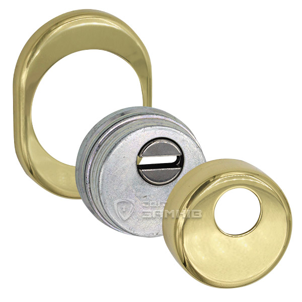 Для монтажу по діаметру протектора робиться отвір в дверному полотні. Кріпиться довкола серцевини стяжними гвинтами, створюючи монолітну конструкцію з нею. Таким чином, протектор захищає її разом із точкою кріплення в дверях від фізичних та силових методів злому — свердління, виламування та вибивання. Доступу до гвинтів кріплення немає і зірвати саму броненакладку надзвичайно складно. Висота (або товщина) її складає 25/33 мм, діаметр - 50 мм. В кольорі “полірована латунь” найкраще буде доповнювати двері світлих відтінків.