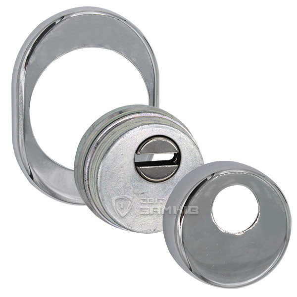 Для монтажу по діаметру протектора робиться отвір в дверному полотні. Кріпиться довкола серцевини стяжними гвинтами, створюючи монолітну конструкцію з нею. Таким чином, протектор захищає її разом із точкою кріплення в дверях від фізичних та силових методів злому — свердління, виламування та вибивання. Доступу до гвинтів кріплення немає і зірвати саму броненакладку надзвичайно складно. Висота (або товщина) її складає 25/33 мм, діаметр - 50 мм. В кольорі “хром” найкраще буде доповнювати двері світлих відтінків - від тепло-сірих до бежевих.