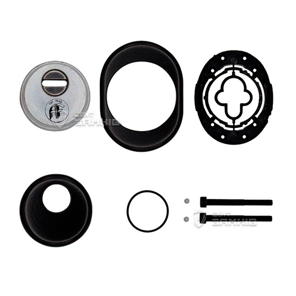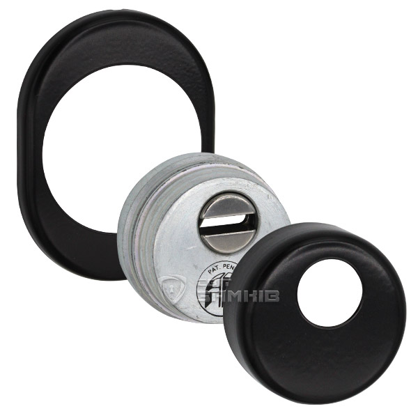 Для монтажу по діаметру протектора робиться отвір в дверному полотні. Кріпиться довкола серцевини стяжними гвинтами, створюючи монолітну конструкцію з нею. Таким чином, протектор захищає її разом із точкою кріплення в дверях від фізичних та силових методів злому — свердління, виламування та вибивання. Доступу до гвинтів кріплення немає і зірвати саму броненакладку надзвичайно складно. Висота (або товщина) її складає 25 мм, діаметр - 50 мм. В чорному кольорі найкраще буде доповнювати двері аналогічних відтінків для того, щоб максимально уникнути контрастів та не привертати зайвої уваги.
