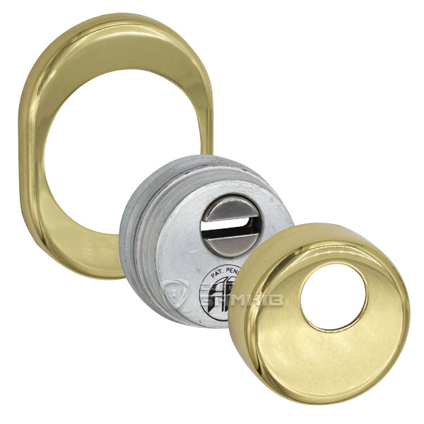 Для монтажу по діаметру протектора робиться отвір в дверному полотні. Кріпиться довкола серцевини стяжними гвинтами, створюючи монолітну конструкцію з нею. Таким чином, протектор захищає її разом із точкою кріплення в дверях від фізичних та силових методів злому — свердління, виламування та вибивання. Доступу до гвинтів кріплення немає і зірвати саму броненакладку надзвичайно складно. Висота (або товщина) її складає 25 мм, діаметр - 50 мм. В кольорі “полірована латунь” найкраще буде доповнювати двері світлих відтінків.