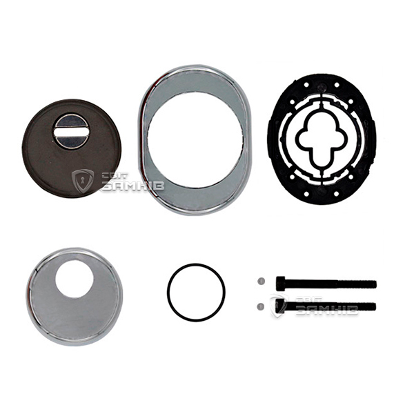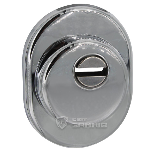 Для монтажу по діаметру протектора робиться отвір в дверному полотні. Кріпиться довкола серцевини стяжними гвинтами, створюючи монолітну конструкцію з нею. Таким чином, протектор захищає її разом із точкою кріплення в дверях від фізичних та силових методів злому — свердління, виламування та вибивання. Доступу до гвинтів кріплення немає і зірвати саму броненакладку надзвичайно складно. Висота (або товщина) її складає 25 мм, діаметр - 50 мм. В кольорі “хром” найкраще буде доповнювати двері світлих відтінків - від тепло-сірих до бежевих.