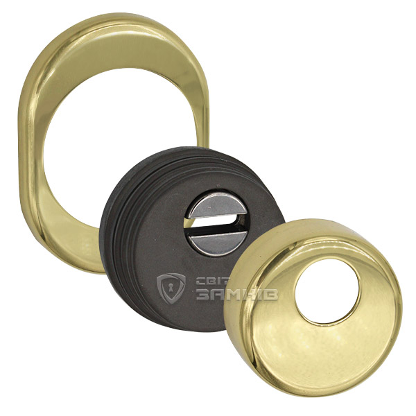 Для монтажу по діаметру протектора робиться отвір в дверному полотні. Кріпиться довкола серцевини стяжними гвинтами, створюючи монолітну конструкцію з нею. Таким чином, протектор захищає її разом із точкою кріплення в дверях від фізичних та силових методів злому — свердління, виламування та вибивання. Доступу до гвинтів кріплення немає і зірвати саму броненакладку надзвичайно складно. Висота (або товщина) її складає 25 мм, діаметр - 50 мм. В кольорі “полірована латунь” найкраще буде доповнювати двері світлих відтінків.