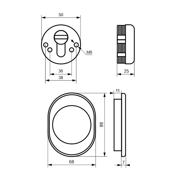 Висота (або товщина) протектора складає 25 мм, діаметр – 50 мм. В кольорі “латунь PVD” найкраще буде доповнювати двері світлих відтінків.відтінків.