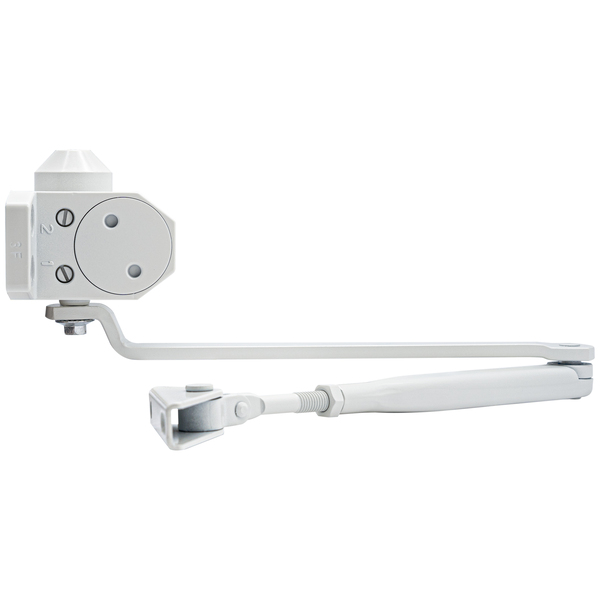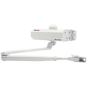 У даній комплектації дотягувач оснащений стандартною тягою без функції фіксації у відкритому положенні. Це робить його універсальним для використання в різних приміщеннях. Білий колір корпусу гармонійно доповнить двері відповідних відтінків, забезпечуючи стильний вигляд і непомітність.