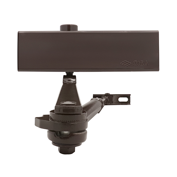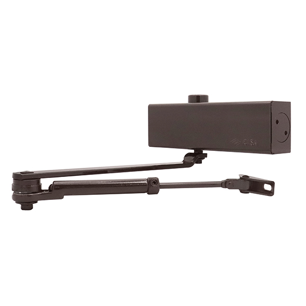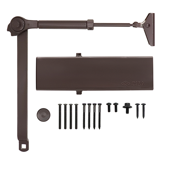 Сила закривання у межах EN 2-4 регулюється шляхом зміни позиції корпусу дотягувача та тяги. У даній комплектації передбачена стандартна тяга, яка дозволяє зафіксувати двері у відкритому положенні під кутом до 130°. Це зручне рішення, яке забезпечує можливість залишати двері відчиненими, наприклад, для провітрювання приміщення або створення комфортних умов під час використання у комерційних об'єктах.
