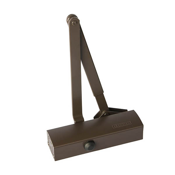 Серед продукції німецького виробника GEZE особливо виділяється дверна фурнітура для автоматичного закривання дверей, а саме - дотягувачі. Дана модель GEZE TS 1500 STD встановлюється накладним монтажем на легкі внутрішні та зовнішні дверні полотна з максимальною вагою до 80 кг та шириною до 1100 мм. Безпосередньо на корпусі є можливість регулювати основну швидкість та швидкість захлопування. Загалом завдяки таким можливостям регулювання можна добитись максимально індивідуального налаштування зачинення дверей. Гідравлічне масло в даній моделі високої якості. Завдяки цьому проблем при роботі дотягувача при перепаді температур не буде. Взагалі його робоча температура варіюється в діапазоні від -20°С до +40°С. В даній комплектації присутня стандартна тяга без фіксації дверного полотна у відкритому положенні. В коричневому кольорі найкраще буде доповнювати двері аналогічних темних відтінків для того, щоб максимально уникнути контрастів та не привертати зайвої уваги.