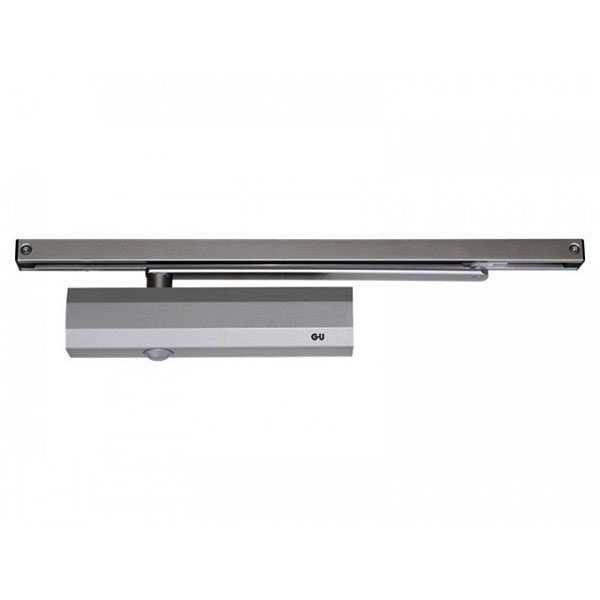 Німецький виробник G-U вже більше століття спеціалізується на випуску дверної та віконної фурнітури. Дана модель дотягувача GU ОТS 634 SLD HO встановлюється накладним монтажем на внутрішні та зовнішні дверні полотна з максимальною вагою до 100 кг та шириною до 1100 мм. Безпосередньо на корпусі є можливість регулювати основну швидкість, швидкість захлопування та гальмо відчинення. Дана функція захищає дверне полотно від удару об стіну та виривання тяги дотягувача. Загалом завдяки таким можливостям регулювання можна добитись максимально індивідуального налаштування зачинення дверей так, як Вам потрібно. Гідравлічне масло в даній моделі високої якості. Завдяки цьому проблем при роботі дотягувача при перепаді температур не буде. Взагалі його робоча температура варіюється в діапазоні від -15°С до +40°С. В даній комплектації присутня ковзна тяга з фіксацією дверного полотна у відкритому положенні в межах 80°-130°. Це дає можливість залишити двері відчиненими для провітрювання чи для зручності користування у комерційних приміщеннях. В сірому кольорі найкраще буде доповнювати двері аналогічних відтінків для того, щоб максимально уникнути контрастів та не привертати зайвої уваги.