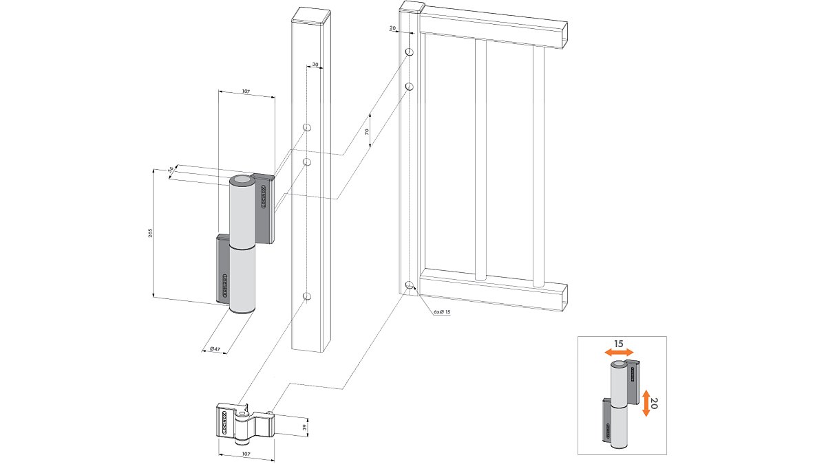 LOCINOX Tiger – це гідравлічна петля з функцією дотягувача, яка встановлюється на хвіртки з кутом відкривання до 180°. Підходить для ліво- та правосторонніх стулок вагою до 75 кг і шириною до 1100 мм. Призначена для використання при вуличних умовах (ступінь захисту IP69). Працює за будь-якої температури від -30°C до +70°C без додаткових налаштувань. Корпус механізму виготовлений з пресованого анодованого алюмінію. Механізм містить елементи із нержавіючої сталі. Дотягувач пиленепроникний та повністю стійкий до будь-якої погоди і ультрафіолетового випромінювання.