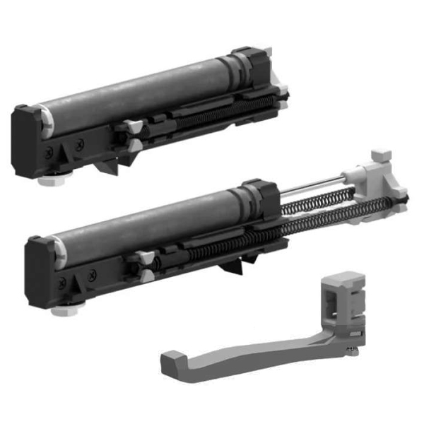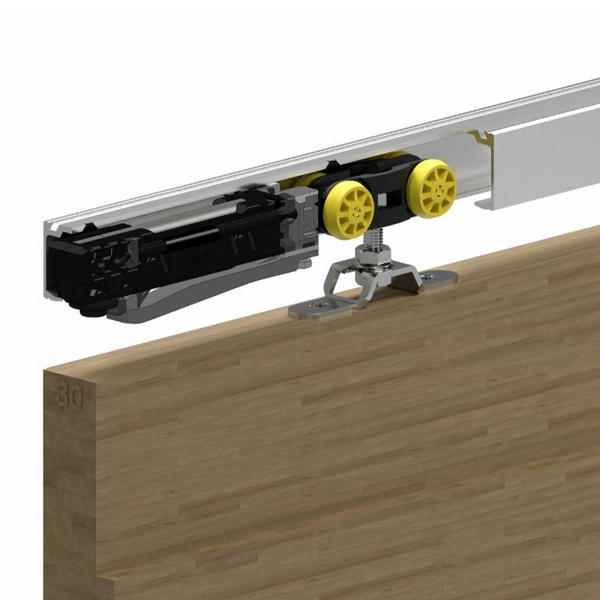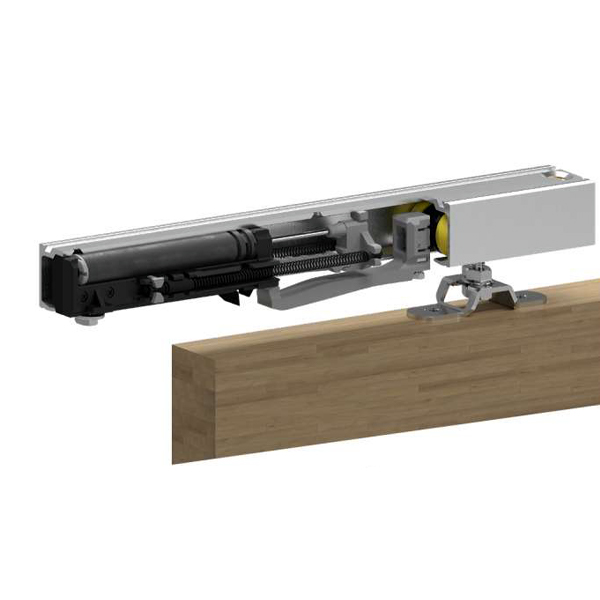 Дана модель дотягувача підходить для дверного полотна вагою до 80 кг. Має регулювання амортизуючої сили для дверей вагою до 40 та 60 кг. Його механізм повністю прихований в напрямній. Дотягувач сумісний з напрямними різних видів (H0-H1-H2), тому є універсальним рішенням при виборі.