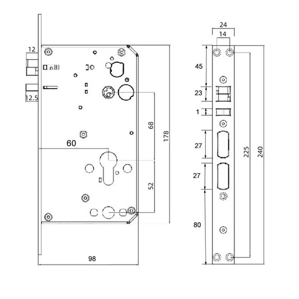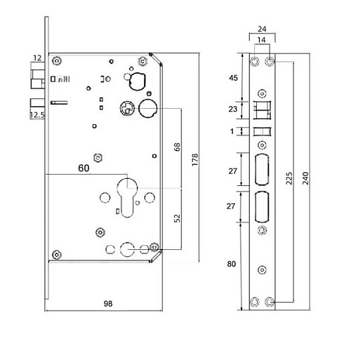 Для повноцінної роботи потрібен врізний механізм замка. Він постачається в комплекті. Накладки встановлюються накладним монтажем на обидві сторони дверей. В решті встановлення замка не потребуватиме великих зусиль. Для цього потрібен лише монтажний комплект. Його можна встановити як на лівосторонні, так і на правосторонні двері.
