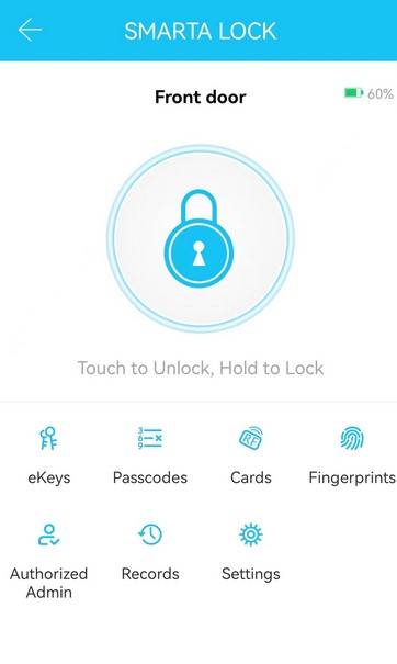 Керування та налаштування замка відбувається безпосередньо у безкоштовному застосунку Smarta Lock для Android та iOS за допомогою Bluetooth. Через нього можна відчиняти та зачиняти двері, надавати тимчасовий, постійний або циклічний доступ родичам, друзям або гостям, отримувати сповіщення про стан дверей та батареї, а також налаштовувати автоматичне відкриття та закриття дверей за розкладом або за прибуттям. Придбавши додатково хаб та під’єднавшись до Інтернету, можна розширити стандартні можливості розумного замка. Детальніше про них тут.