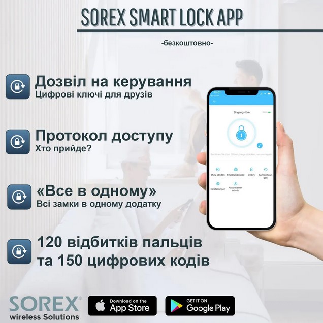 В зоні дії Bluetooth господар за допомогою застосунку Sorex Smart Lock може відкривати та закривати двері, надавати тимчасовий або постійний доступ своїм родичам, друзям або гостям, отримувати сповіщення про стан дверей, а також налаштовувати автоматичне відкриття та закриття дверей за розкладом або за прибуттям. Придбавши додатково хаб, можна під’єднатись до Інтернету та розширити стандартні можливості розумного замка PES Ford. Детальніше про них тут.