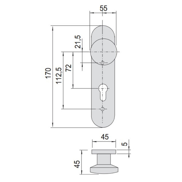 Опис Ручка на планці для врізної антипаніки CISA 07076.24 фіксована 72 мм чорна
