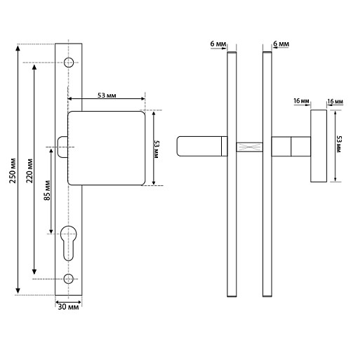 | Тип ручки на планці | під серцевину | |