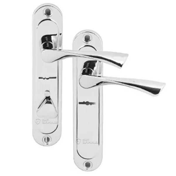 Ручки на планці торгової марки AVERS. Як правило встановлюються на вхідні дерев’яні двері. Виготовлені із цинкового сплаву, такі ручки важкі та надійні. Завдяки цьому вони прослужать довго, а покриття не буде стиратися протягом 60 місяців. Популярний колір – хром – чудово підійде для інтер’єру з яскравими світлими відтінками. Вдалий вибір ручки на планці залежить від міжосьової відстані, вона буває різною і зумовлена тим, який у Вас встановлено замок. Ця модель підходить лише для сувальдного механізму замка з міжосьовою відстанню 42 мм, оскільки планка має отвір тільки під сувальдний ключ. Важливо звертати увагу на сторонність ручок. Така модель підходить лише для правих дверей. Кріплення забезпечується за рахунок стяжних гвинтів. Для того щоб збільшити термін експлуатації та уникнути проблем з провисанням ручки, її потрібно як слід зафіксувати спеціальним гвинтом – гужоном. Дизайн в стилі модерн чудово доповнить Ваше дверне полотно з плавними лініями.