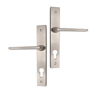 Модель виготовлена з алюмінієвого сплаву, що робить експлуатацію легкою та доволі зручною. Міжосьова відстань, по якій орієнтуються, обираючи цей тип ручок, становить 85 мм. Планка кріпиться до дверного полотна шурупами або стяжними гвинтами. В кольорі “сатин” вдало виглядатимуть на дверях аналогічних відтінків. В стилі хай-тек ручки стануть ідеальним доповненням до сучасної фурнітури та дизайну приміщення.
