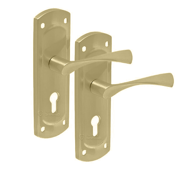 Ручки на планці турецького виробництва SIBA. Це надійна та якісна дверна фурнітура за прийнятну ціну. Переважно використовується на вхідних та міжкімнатних дерев’яних або металевих дверях в квартиру чи будинок. Матеріал виготовлення – цинковий сплав. Його перевага в тому, що він міцний та стійкий до навантажень. Довга масивна планка чудово доповнить дверне полотно великих розмірів. Нажимна частина оснащена металевим пружинним механізмом, що забезпечить зручне користування та гарантує понад 200 тисяч натискань. Покриття наноситься методом гальваніки у декілька шарів, завдяки чому кольоровий відтінок буде захищений від стирання та подряпин до 60 місяців. Вишуканий колір – матове золото – чудово підкреслить будинок або квартиру в спокійних золотих тонах. Вдалий вибір ручки на планці залежить від такого критерію як міжосьова відстань. Ця модель підходить тільки для механізму замка з міжосьовою відстанню 55 мм. Кріплення планки до дверного полотна відбувається за рахунок шурупів або стяжних гвинтів. Під час цього процесу важливо міцно зафіксувати ручки спеціальним гвинтом – гужоном. Він збільшить термін експлуатації ручок та дозволить уникнути проблем з їх провисанням.