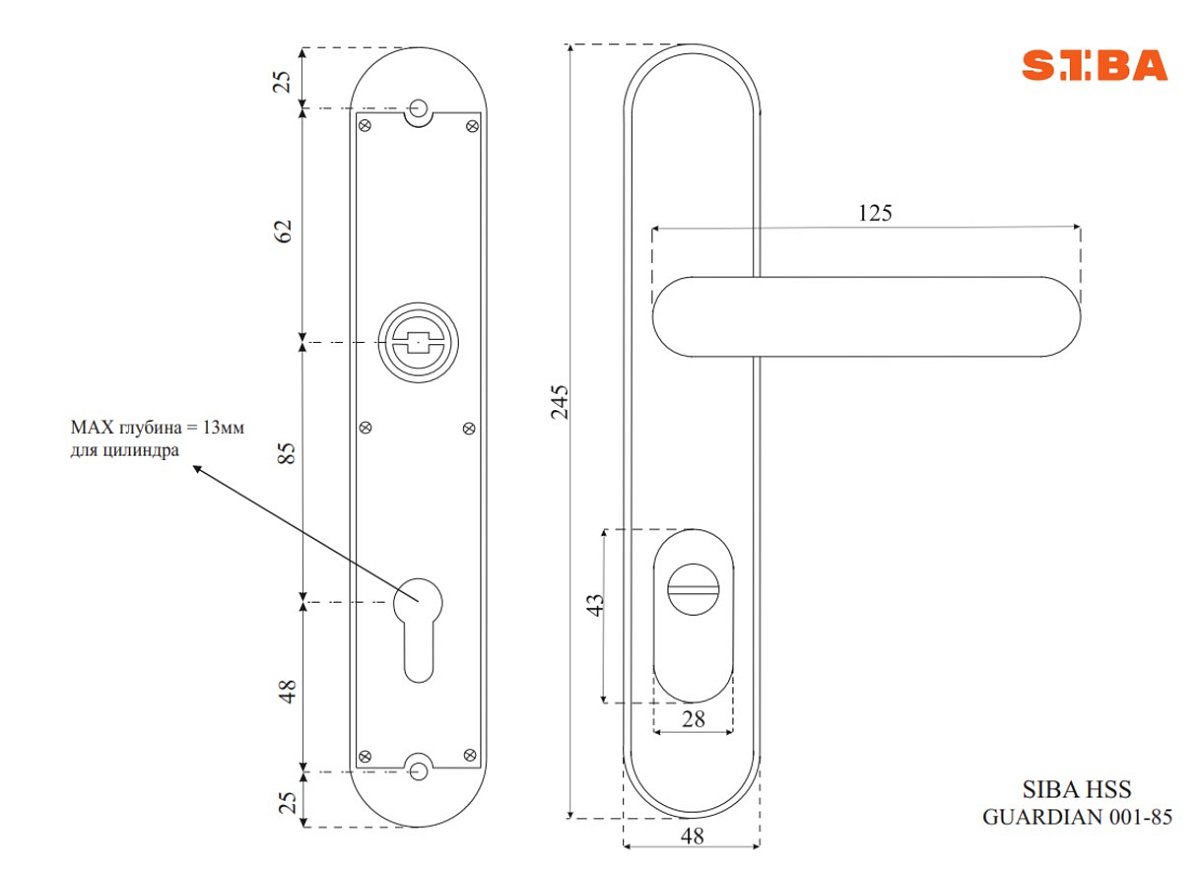 | Модель ручки на планці | SIBA HSS Guardian | |