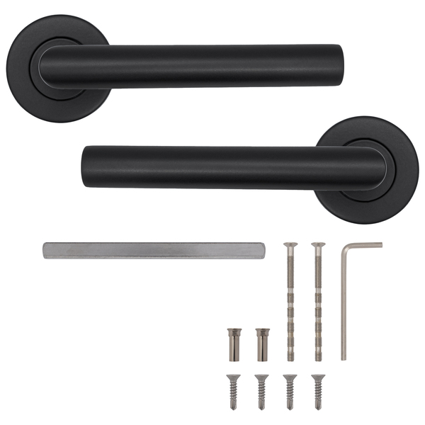 Ручки такого типу доволі легко монтуються. В них не видно отворів для кріплення – вони ідеально приховані розетою. За необхідності установки фурнітури на товстіші двері потрібно додатково придбати відповідний подовжуючий набір.