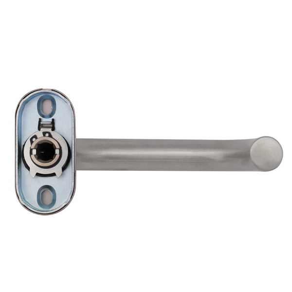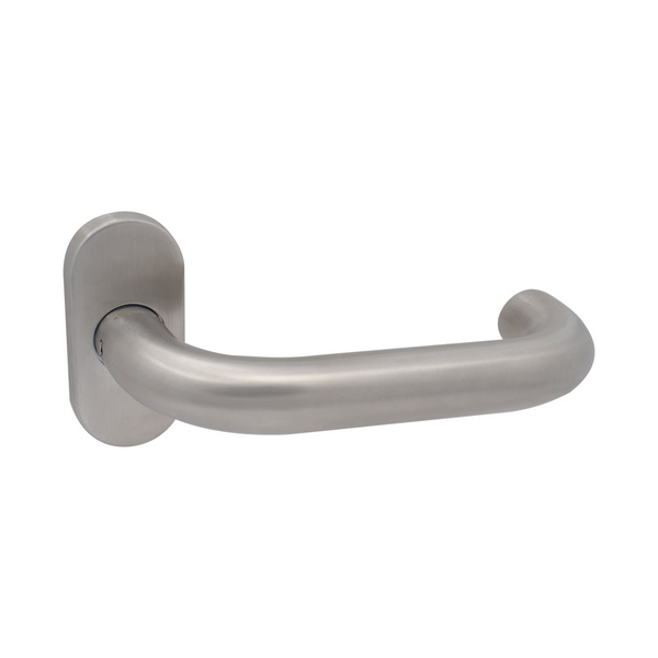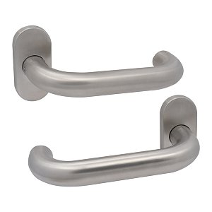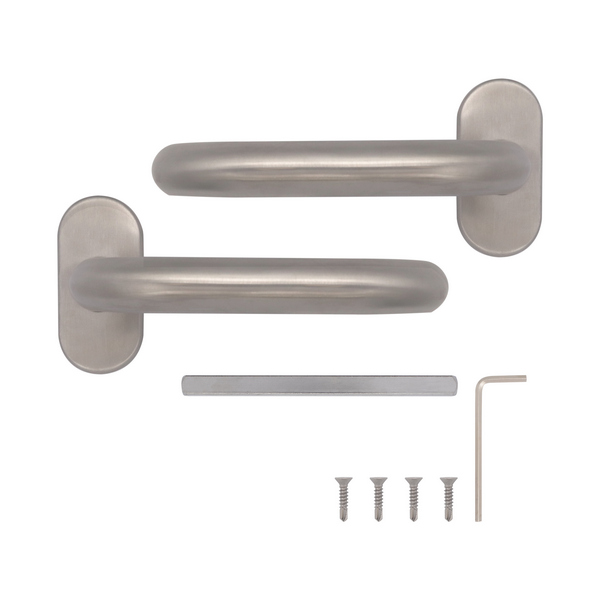 Ручки виготовлені з нержавіючої сталі, що дає можливість використовувати їх при різних погодних умовах. Вони доволі міцні та зносостійкі. Ергономічна форма натискної частини та матова поверхня забезпечують зручність повсякденного користування. Округлий дизайн в кольорі матової нержавіючої сталі якнайкраще підходить для громадських місць чи офісів з великим потоком людей.