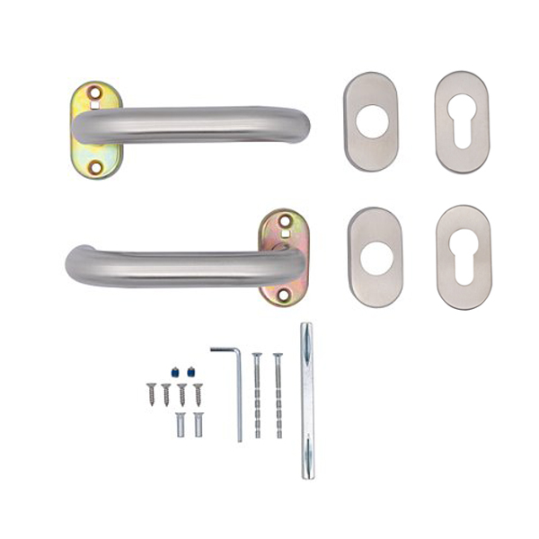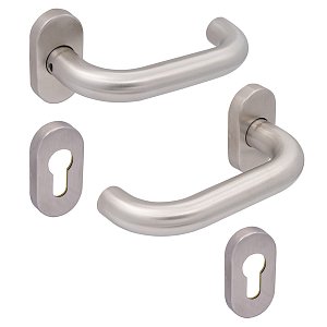 CISA PL Oval 07070.80 – це ручки на овальній розеті, які обирають насамперед для дверей в приміщеннях приватного та громадського призначення. Комплектне кріплення дозволяє монтувати їх на полотнах товщиною від 38 до 54 мм.