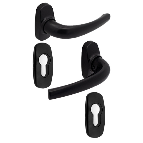 За конструкцією ручки доволі прості та виконані у класичному стилі. Зручна форма буде комфортною у експлуатації. Важливою характеристикою є те, що вони натискаються в обидва боки, як вниз так і догори. Це буде доречно для використання у металопластикових дверях. Покриття ручок виконане гальванічним методом, яке гарантує збереження їхнього зовнішнього вигляду до 60 місяців. В “чорному” кольорі будуть ідеально доповнювати полотна темних відтінків.