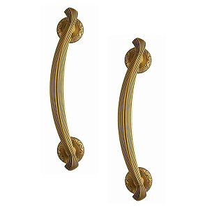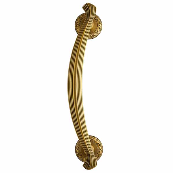 Ручка скоба торгової марки TRION. Представляє з себе елегантну дверну фурнітуру за доступну ціну. Ручки суцільнолиті із цинкового сплаву, завдяки чому вони міцні та стійкі до корозії. Таким чином їх зовнішній вигляд буде збережений від стирання понад 60 місяців. Фурнітура такого типу зручна у використанні та має тривалий термін експлуатації. Популярний кольоровий відтінок – кава - доречно поєднується з приміщенням в темних кавових відтінках. Вишуканий дизайн в класичному стилі гармонійно доповнить дверне полотно із різноманітними орнаментами та візерунками, а також довершить інтер’єр з елементами класики. Основним технічним критерієм при виборі є довжина ручки та відстань між кріпленнями. Важливо щоб при встановленні скоби, кріплення розмістились вище та нижче замка. Найчастіше ручки такого типу використовують з замком “бочкою”. Якщо ручка монтується лише одна то вона фіксується на шурупи, які прикриваються зовнішньою розетою. Якщо ж ручки ставляться дві - через дверне полотно робиться наскрізний отвір, куди вставляється спеціальна шпилька з різьбою. На неї накручується ручка і фіксується гужонами на нижній і верхній розеті.