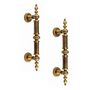 Ручка скоба торгової марки TRION. Представляє з себе елегантну дверну фурнітуру за доступну ціну. Ручки суцільнолиті із цинкового сплаву, завдяки чому вони міцні та стійкі до корозії. Таким чином їх зовнішній вигляд буде збережений від стирання понад 60 місяців. Фурнітура такого типу зручна у використанні та має тривалий термін експлуатації. Популярний кольоровий відтінок – кава - доречно поєднується з приміщенням в темних кавових відтінках. Вишуканий дизайн в класичному стилі гармонійно доповнить дверне полотно із різноманітними орнаментами та візерунками, а також довершить інтер’єр з елементами класики. Основним технічним критерієм при виборі є довжина ручки та відстань між кріпленнями. Важливо щоб при встановленні скоби, кріплення розмістились вище та нижче замка. Найчастіше ручки такого типу використовують з замком “бочкою”. Якщо ручка монтується лише одна то вона фіксується на шурупи, які прикриваються зовнішньою розетою. Якщо ж ручки ставляться дві - через дверне полотно робиться наскрізний отвір, куди вставляється спеціальна шпилька з різьбою. На неї накручується ручка і фіксується гужонами на нижній і верхній розеті.