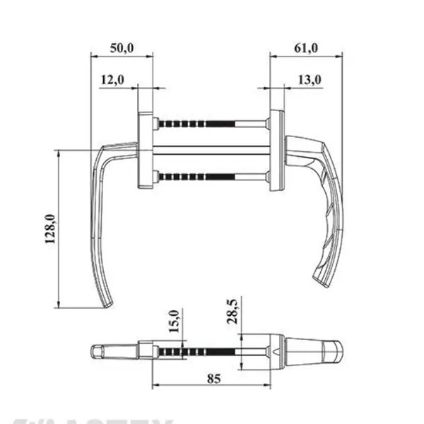 ASTEX Antey BHS 1/3 – це балконні асиметричні ручки. Призначені для встановлення на металопластикові міжкімнатні та балконні дверні полотна. Комплект забезпечує відчинення та закривання дверей з обох боків. Ручки виготовлені із алюмінієвого сплаву. Кріплення наскрізне двогвинтове. Кріпильні гвинти мають насічки для укорочення і встановлюються на будь-який профіль.