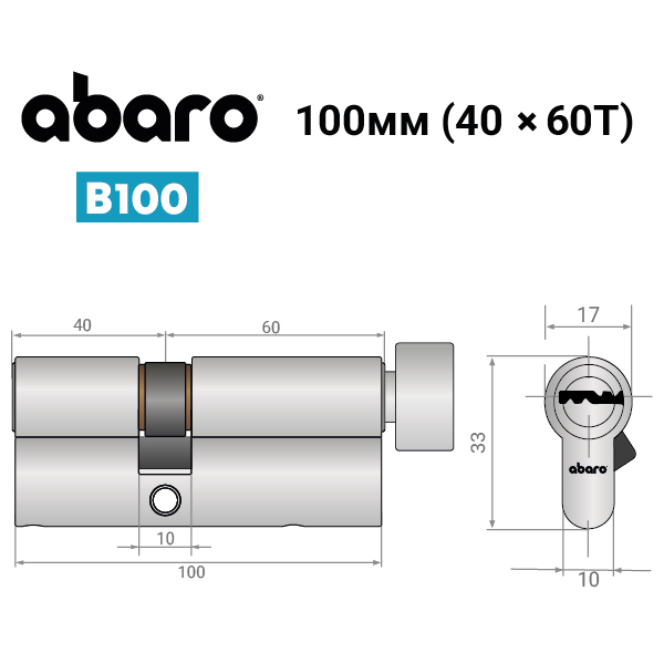 Опис Циліндр ABARO B100 100T (40*60T) Ni нікель сатин 5 ключів