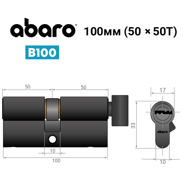 Циліндр ABARO B100 100T (50*50T) Bk чорний 5 ключів