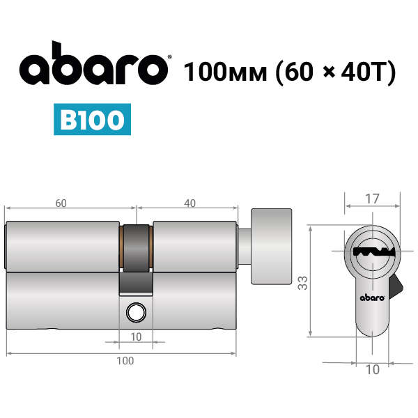 Опис Циліндр ABARO B100 100T (60*40T) Ni нікель сатин 5 ключів