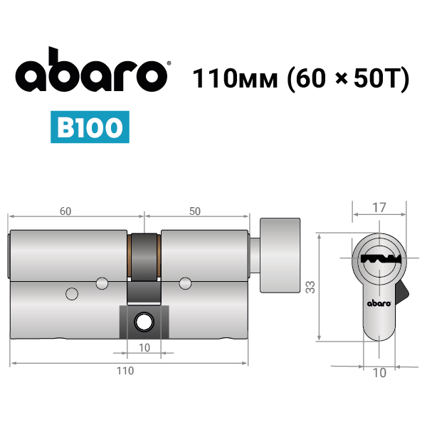 Опис Циліндр ABARO B100 110T (60*50T) Ni нікель сатин 5 ключів