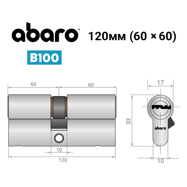 Опис Циліндр ABARO B100 120 (60*60) Ni нікель сатин 5 ключів