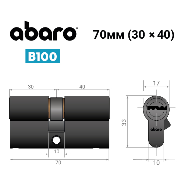 Циліндр ABARO B100 70 (30*40) Bk чорний 5 ключів
