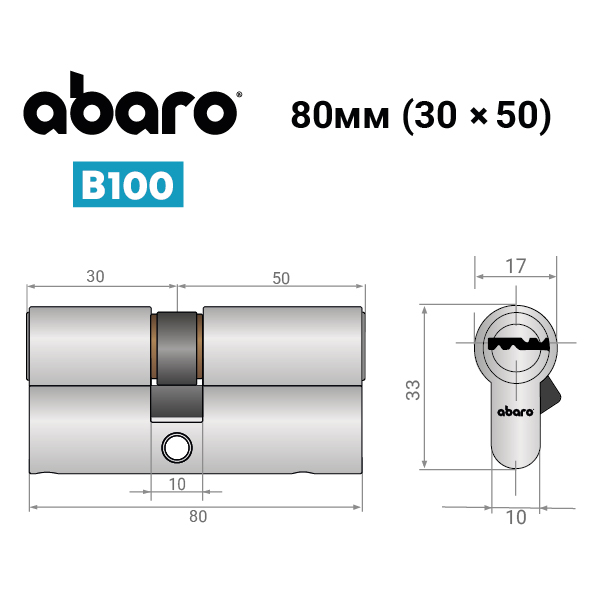 Опис Циліндр ABARO B100 80 (30*50) Ni нікель сатин 5 ключів