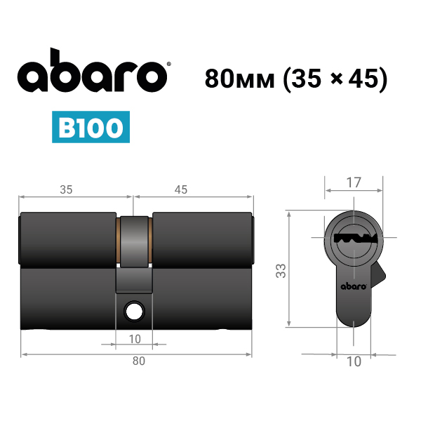 Опис Циліндр ABARO B100 80 (35*45) Bk чорний 5 ключів